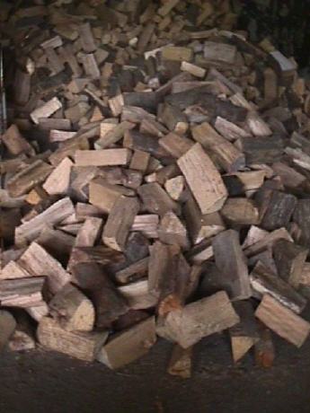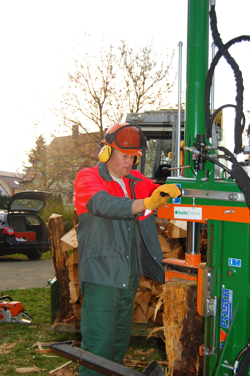 Das fertige Kaminholz wird bei uns auf ca 33 cm Länge gesägt und gespalten.